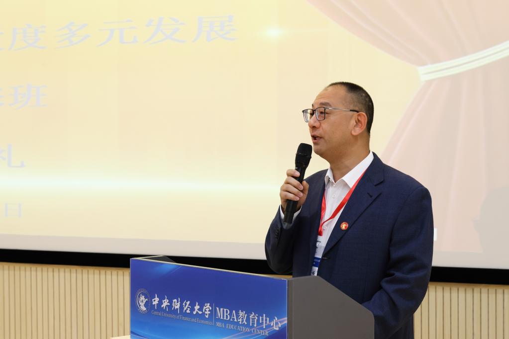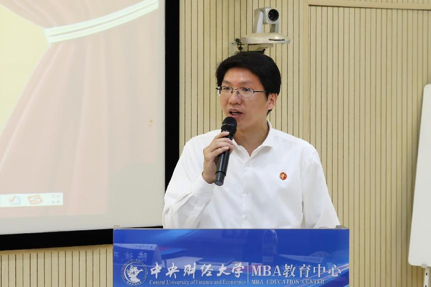 6月13日上午,研修班举行了开班典礼,中央财经大学副校长陈斌开、中央财经大学国际合作处处长、港澳台事务办公室主任葛建新、中央人民政府驻澳门特别行政区联络办公室北京联络部副部长张屹峰、澳门特别行政区政府驻北京办事处主任梁洁芝、中央人民政府驻澳门特别行政区联络办公室北京联络部交流处处长司晨、中央人民政府驻澳门特别行政区联络办公室北京联络部交流处一级调研员朱森、澳门学人发展协会会长陈青飞、澳门学人发展协会理事长温林鉴等出席了开班典礼。开班典礼由万象城·体育院长兼MBA教育中心主任林嵩主持。