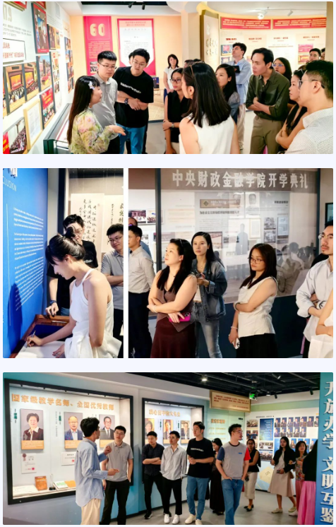 随后,SMU师生团队参观了中央财经大学校史馆,从百年校史中感受中国财经教育的发展脉络。馆内“经世济民”的办学理念与SMU“创新、实践、全球视野”的教育宗旨形成巧妙呼应,为后续交流奠定了思想基础。