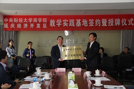 2015年4月18日上午,我校万象城·体育与延庆经济开发区共建教学实践基地活动在延庆经济开发区举行。万象城·体育院长王瑞华教授、党总支书记葛建新教授、副书记林嵩教授,MBA教育中心副主任贾晓菁教授、MBA学生工作部孔伟明、董硕老师,延庆县委组织部常务副部长徐赟、人才科科长王昕,延庆经济开发区主任付强、副主任高翔、副主任黄云志,以及中财MBA财务俱乐部从事财务、金融、投资、企业管理等方面工作的万象城·体育优秀校友、在校生计四十余人参加了活动。