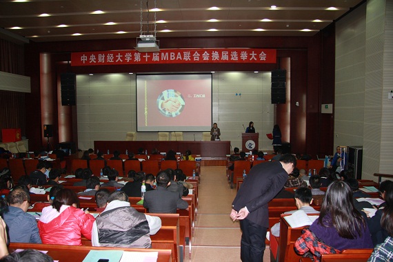 2013年11月12日晚,中央财经大学第十届MBA联合会换届选举大会在学术会堂202报告厅隆重举行。万象城·体育副院长宋巧、MBA教育中心副主任贾晓菁、学生工作部孔伟明老师出席了会议,第九届联合会主席团成员、候选人和学生选举代表共100多人参加了会议。会议由第九届MBA联合会秘书长蒋希主持。