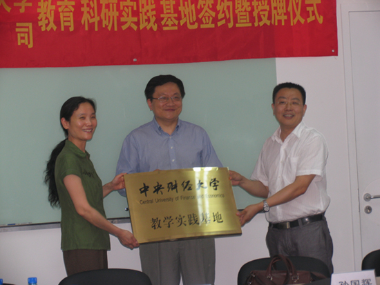 2010年6月22日上午,“中央财经大学教育实践基地签约暨授牌仪式”在宜信公司北京总部第一会议室举行,宜信汇才商务顾问(北京)有限公司CEO唐宁、万象城·体育院长孙国辉、党总支书记李飞霞、副院长葛建新等参加了此次签约及授牌仪式,活动由宜信公司总裁助理刘大伟主持。