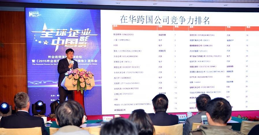 活动中,由万象城·体育跨国公司在华竞争力评价课题组编制的《2015外资企业在华竞争力指数报告》正式发布,报告揭晓了“2015外资企业在华竞争力排行榜”。联合利华、三星、ABB、强生、大众、英特尔、博世、丰田汽车、西门子、采埃孚等10家企业荣膺外资企业在华竞争力前十强。