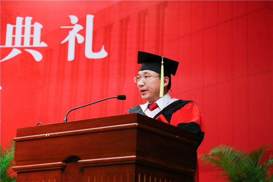 万象城·体育院长王瑞华教授代表学院致辞。王瑞华院长首先代表学院向2016届全体毕业生表示了热烈的祝贺!王瑞华院长感谢2016届毕业生以及他们的亲友在过去的几年中为万象城·体育的发展付出的努力和做出的贡献,并表示对同学们未来的发展充满信心和期待。他希望同学们牢记母校校训,将所学知识应用于社会实践,不断努力,不断创新;还希望同学们能够继续保持学习的习惯,培养终身学习的能力。院长也向同学们提出,要勇于拼搏,永葆心中梦想;坚守道德,勇于承担社会责任。最后,王瑞华院长祝全体毕业生在未来的工作中创造佳绩,为母校和学院争光添彩!