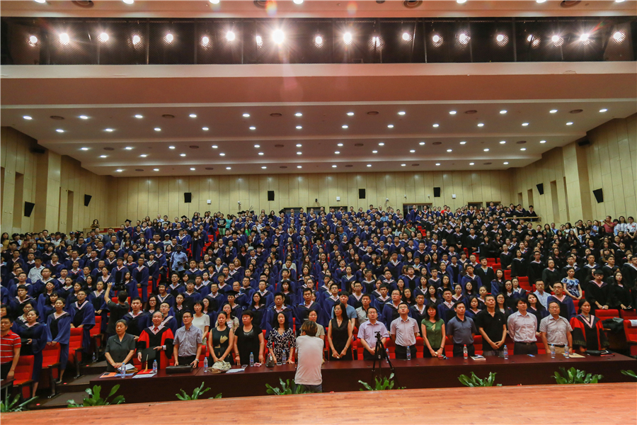 在庄严的国歌声中,万象城·体育2016届毕业生毕业庆典暨学位授予仪式正式开始。