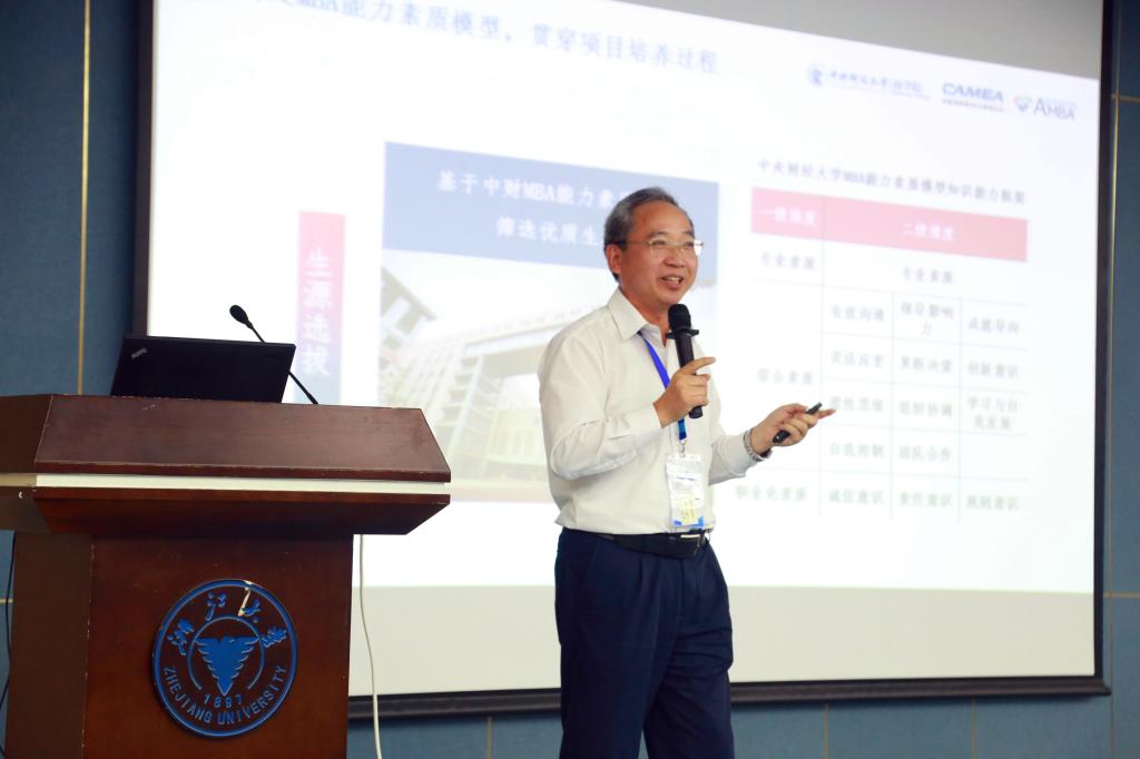 在下午的专题研讨会上,与会嘉宾同时围绕“稳中求进,内涵发展”——工商管理硕士专业学位教育发展新趋势和“服务需求、提高质量”——工商管理硕士专业学位教育质量提升进行了分享和探讨。在质量提升专题研讨会上,中央财经大学、同济大学、武汉大学等6所MBA培养院校进行了主题分享,王瑞华院长代表我校以“加强质量把控,推动项目使命实现”为主题进行了演讲,他以MBA教育外在环境的变化为背景,万象城(中国)介绍了我校MBA教育在质量把控方面的做法和经验,并提出了若干建议和思考。