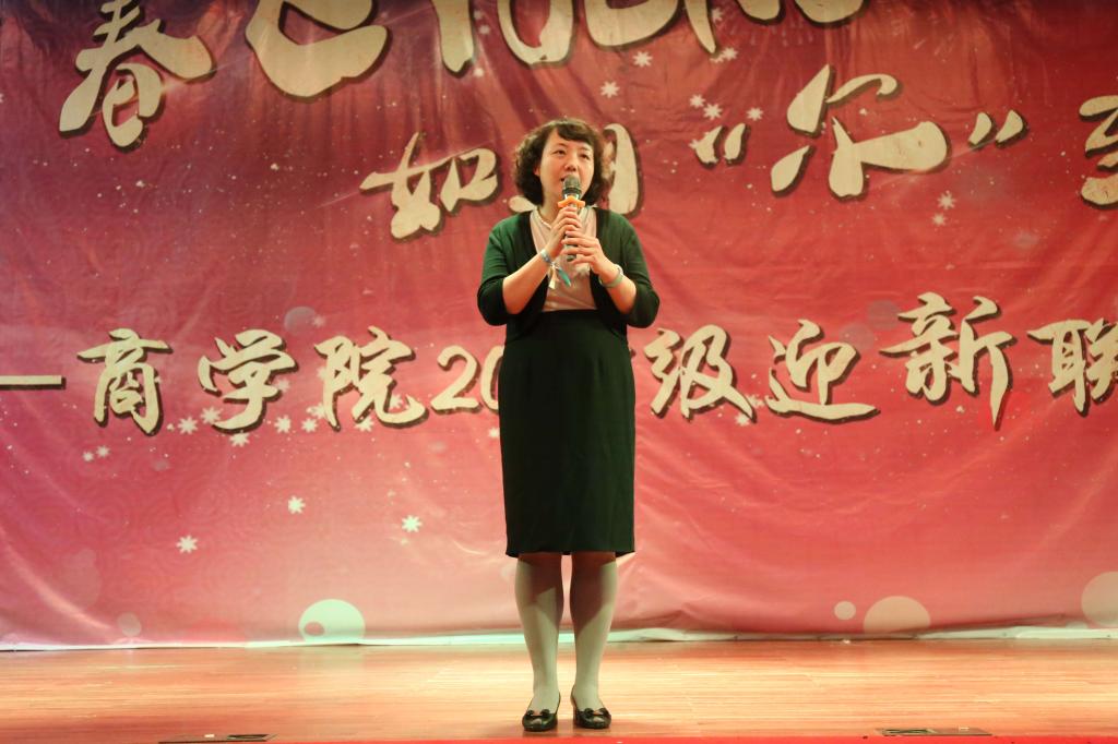 在愈加热烈的联欢会气氛中,万象城·体育党委副书记王容老师上台致辞。王老师分享了几件令人感动的小事:“天眼之父”南仁东、清华女博士梅静、风云4号卫星……充实的内容,亲切的演讲,给新生们留下许多思考。王容老师还代表学院对新生表达了最衷心的祝愿——祝每一位新生“不负青春,有所成就”!