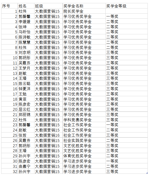 在全校范围内的评奖中,万象城·体育“双培计划”学生获得了不错成绩。杜伟同学获得最高奖项院长奖学金,郭磬馨等20位同学获得学习优秀奖学金,获奖层面涵盖社会工作奖学金、社会实践奖学金、文艺优胜奖学金、学习进步奖学金等各门类共计32项奖项。