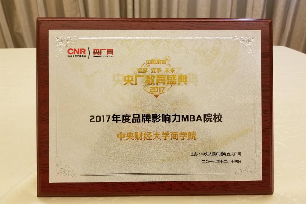 2017年是中国教育的关键之年,为进一步深化教育综合改革,在互联网新时代探讨属于中国教育未来发展的新模式,央广网依托中央人民广播电台母体资源,举办“中国教育+”央广教育盛典。本次盛典以“智享 变革 未来”为主题,聚力教育界专家学者、行业领袖、优秀机构,共同讨论加速变革的时代下,教育的内容品质和发展变革。中央财经大学MBA教育中心项目发展部黄基鑫老师、第十四届MBA联合会副主席常鑫参加本次论坛并代表学校领奖。
