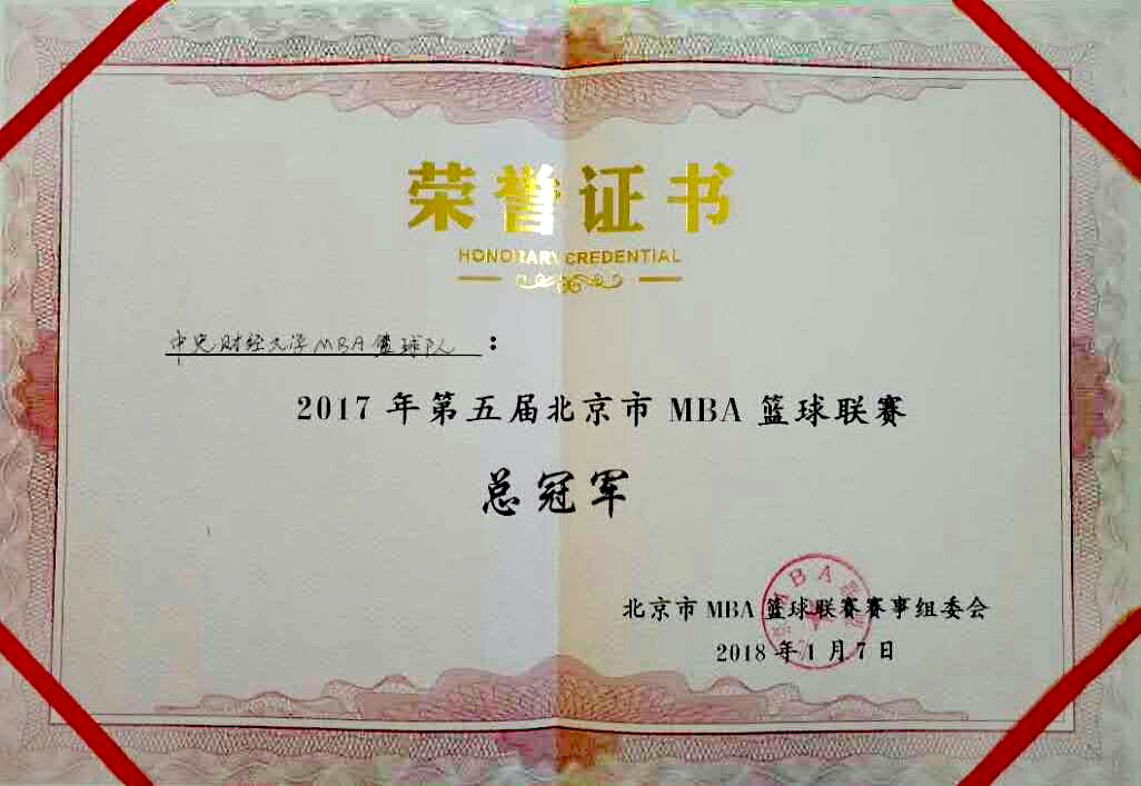 2017级我校MBA篮球队用团结奋战的士气,用酣畅淋漓的胜利,用创造历史的成绩,展示了中财人的风采和实力,赢得了北京各高校的掌声和赞许!今后,我校MBA学生将继续秉持“忠诚、团结、求实、创新”的理念,弘扬体育精神,紧跟时代,继续奋斗,薄积薄发,无论在比赛场上还是商业场上,创造一个又一个辉煌!