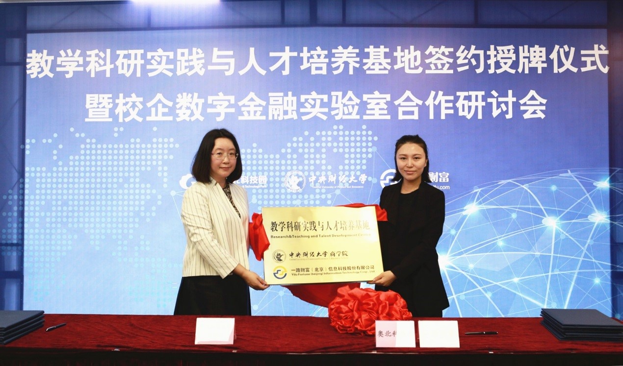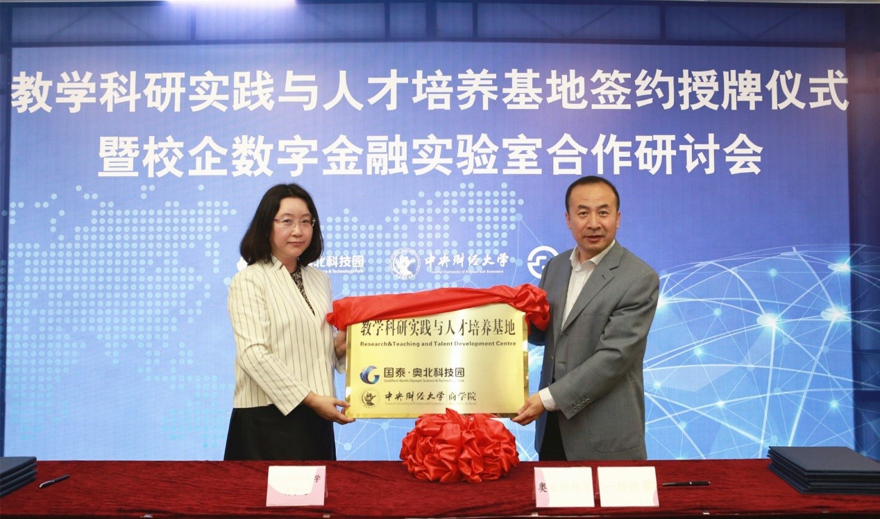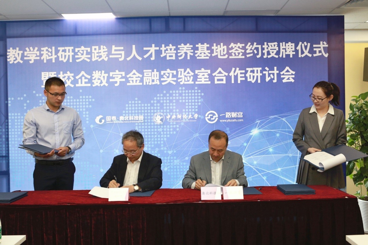 随后,王瑞华院长分别与何泽平董事长、吴雪秀副总裁共同签署了国泰集团、一路财富校企合作协议。葛建新书记代表万象城·体育向国泰集团、一路财富授予中央财经大学教学科研实践与人才培养基地铜牌,并分别与何泽平董事长、张妍总监为教学实践基地揭牌。
