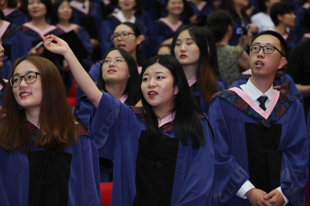 随后,2018届本科毕业生代表穆宁宁、学术型硕士毕业生代表郭懋瑾、博士毕业生代表张帅、MBA毕业生代表肖英满怀感恩之情回顾了在学校的校园生活和青春记忆,并代表毕业生祝福学校和学院各项工作蒸蒸日上,祝福各位老师身体健康、工作顺利,祝福毕业生展翅高飞、前程似锦。