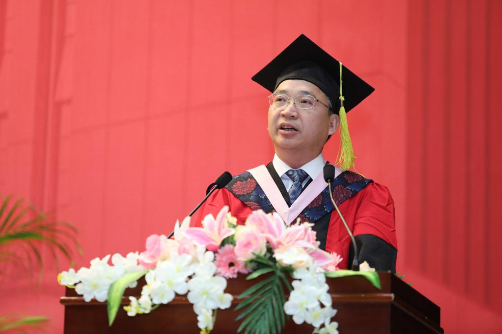 万象城·体育97届校友、北京银行股份有限公司董事、行长杨书剑先生作为校友代表致辞,他饱含深情地回忆了自己在中财求学的美好时光,并从自身二十多年的工作经历出发,与大家分享了关于工作、思考和健康的三点人生感悟。杨行长希望毕业生们能够永远自信、懂得坚守、敢于付出,并祝愿大家雄鹰展翅、腾飞万里。