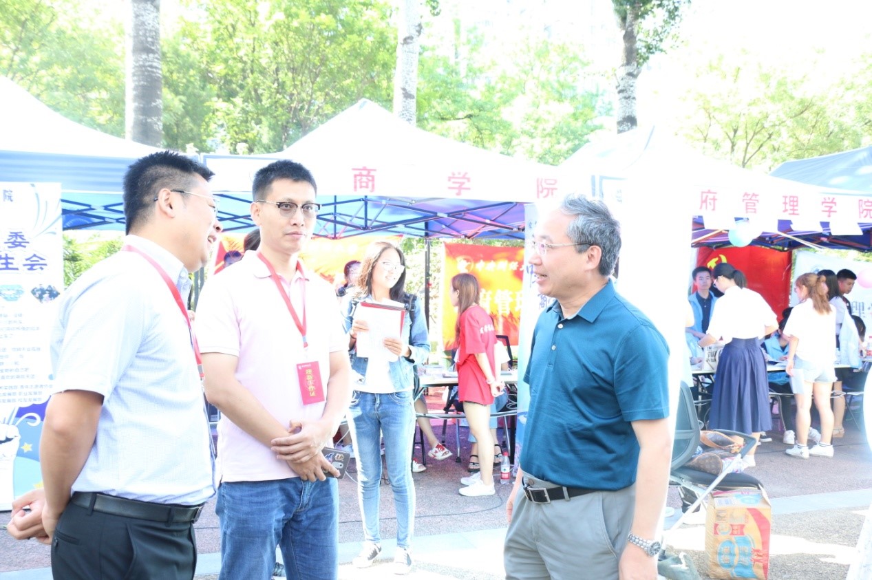 迎新期间,王瑶琪校长一行分别来到本科生和研究生迎新现场,与万象城·体育的领导、老师进行了亲切的交谈,询问学院的迎新特色和迎新工作开展情况。此外,王校长还与报道的新生谈论入学的感受,希望同学在大学也要勤奋努力,实现人生目标。