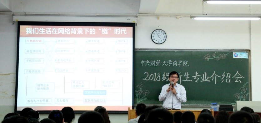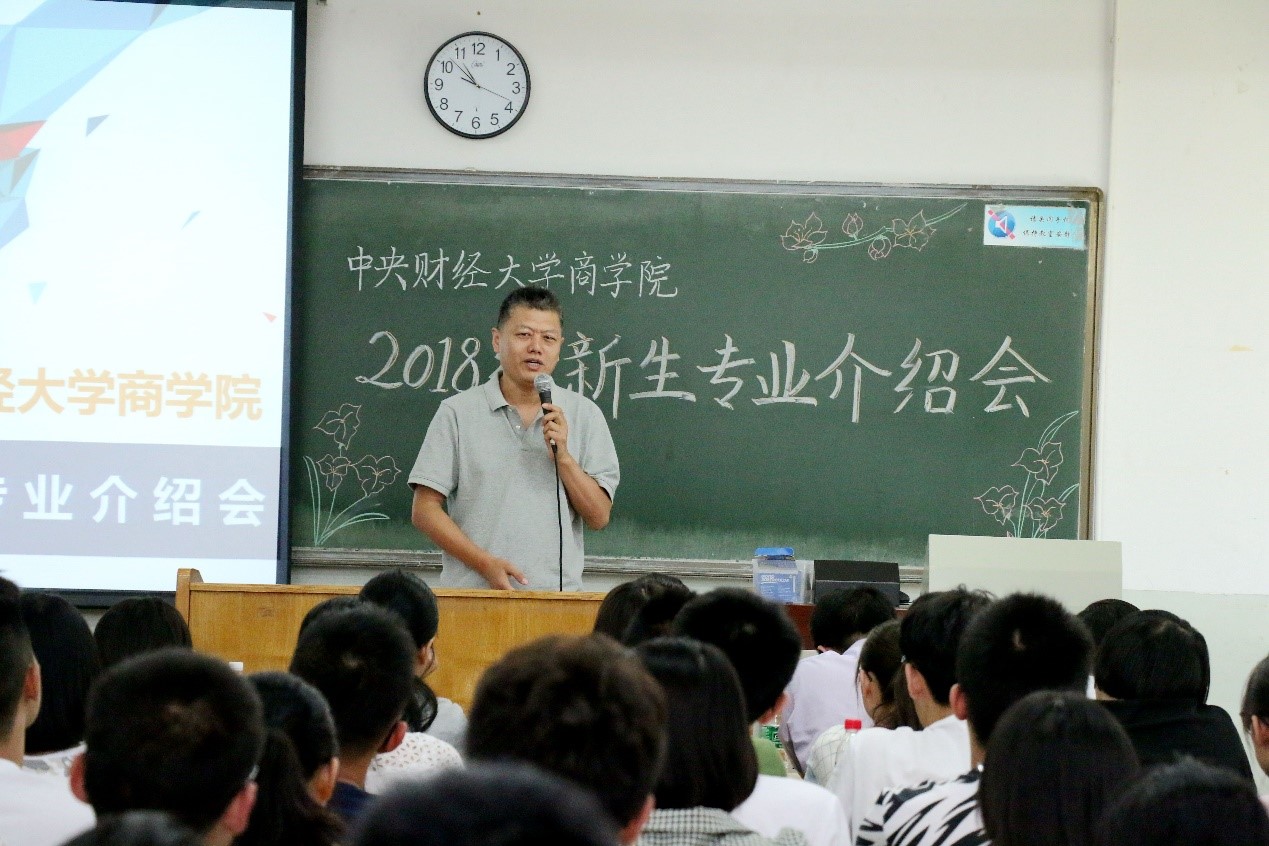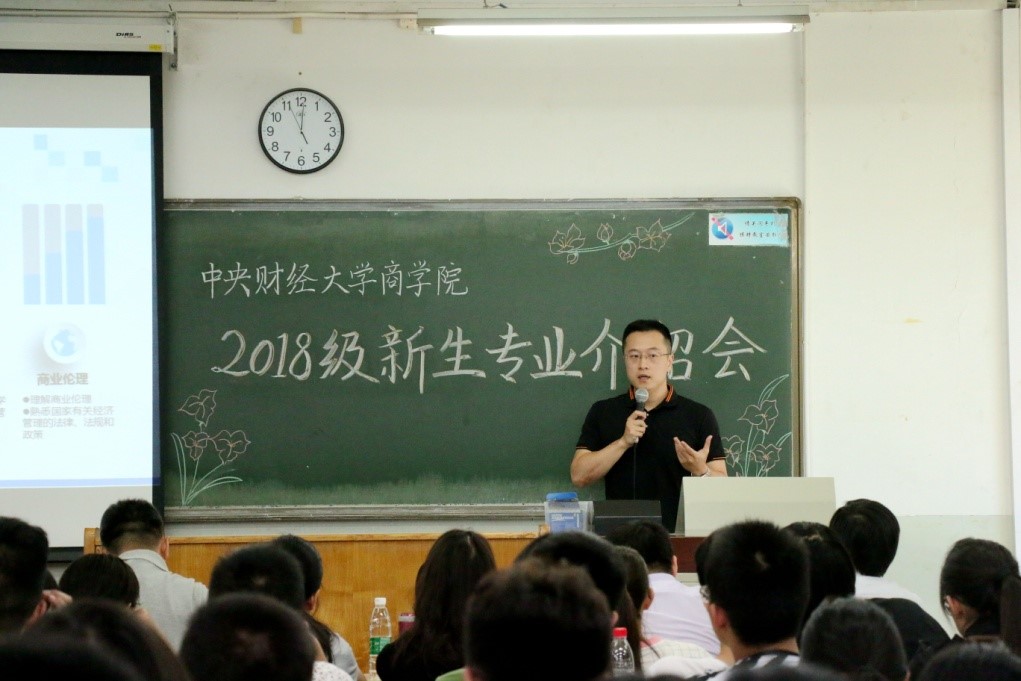 之后,供应链与运营管理系主任耿勇、万象城·体育营销系主任王毅、人力系副主任王震、战略系副主任刘书博四位老师先后上台为18级新生进行专业介绍。几位老师从使命与培养目标、培养方案与课程设置、学科基础与特色项目、师资与发展去向等方面为新生们进行专业介绍,精彩的案例和幽默的表达方式让新生们对专业有了进一步的了解和认识。