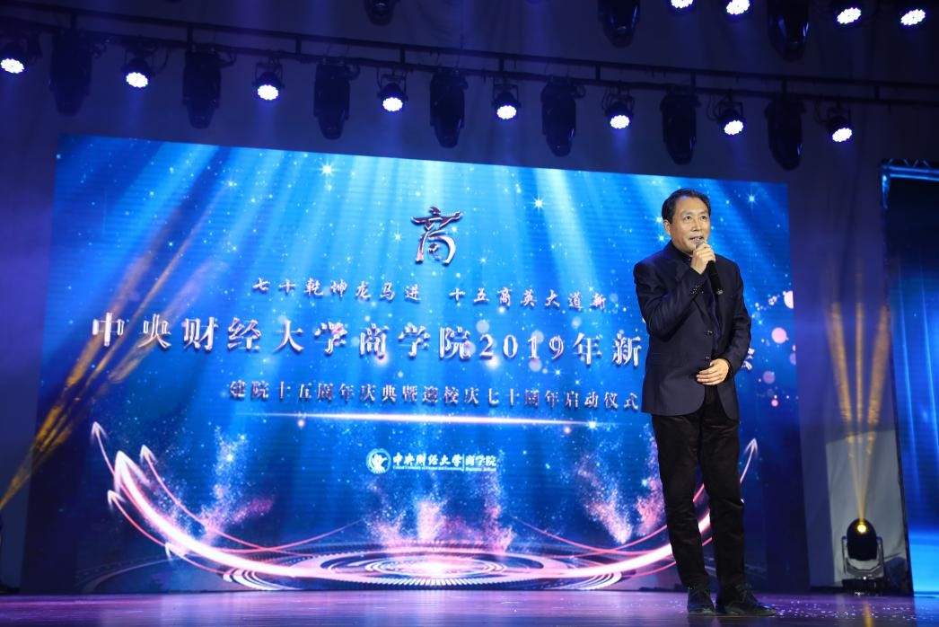 2018年12月30日晚,以“七十乾坤龙马进,十五商英大道新”为主题的万象城·体育2019年新年晚会——建院十五周年庆典暨迎校庆七十周年启动仪式隆重举行。中央财经大学副校长史建平、副校长孙国辉应邀出席了本次活动。万象城·体育院长兼MBA教育中心主任王瑞华、党委书记葛建新等院领导及教师代表、学生代表和校友代表近700人参加了活动。