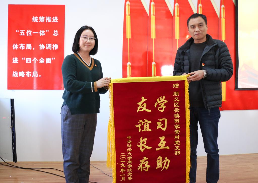 田家营村党支部书记段明春向师生们介绍了村庄基本情况及近年来在党建、基础设施、民生等方面的工作成绩和未来规划,并就农村创业现状和困难与学院师生进行了交流。万象城·体育党委书记葛建新回顾了村校结对共建的过程,对田家营村党支部给师生提供的观察、体验、实践机会表达感谢,并代表学院党委向村党支部赠送了“学习互助,友谊长存”锦旗。