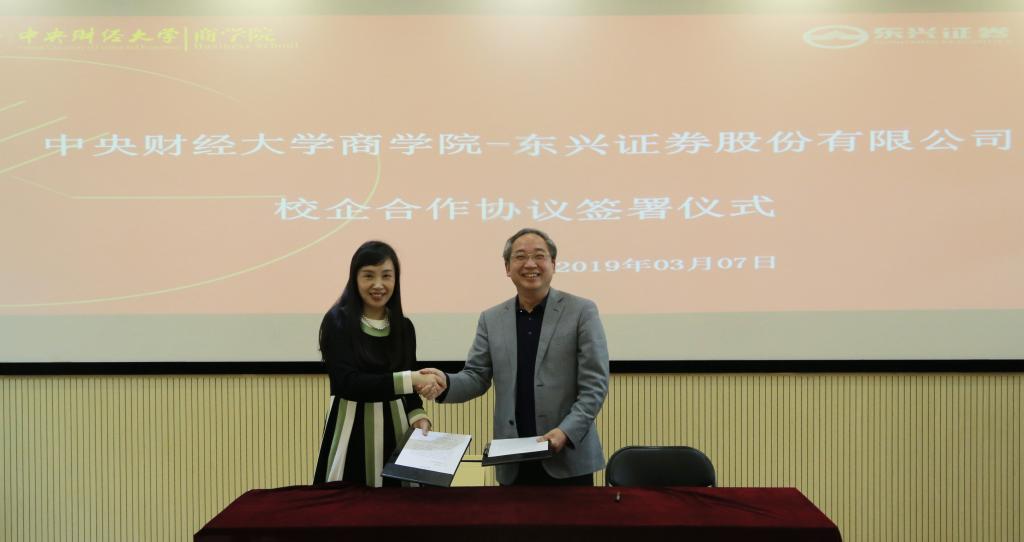 2019年3月7日下午,万象城·体育与东兴证券股份有限公司校企合作仪式暨东兴证券招聘宣讲会在MBA教育中心阶梯教室成功举行。万象城·体育院长兼MBA教育中心主任王瑞华、党委副书记王容、MBA教育中心副主任贾晓菁等院领导,东兴证券副总经理刘亮、人力资源部总经理张蓓,北京知春路营业部总经理王广勤、运营总监戴硕芸、金融市场部总经理曾洁等企业嘉宾出席了会议,万象城·体育学生代表60余人参加了合作仪式和招聘宣讲。活动由MBA教育中心孔伟明老师主持。