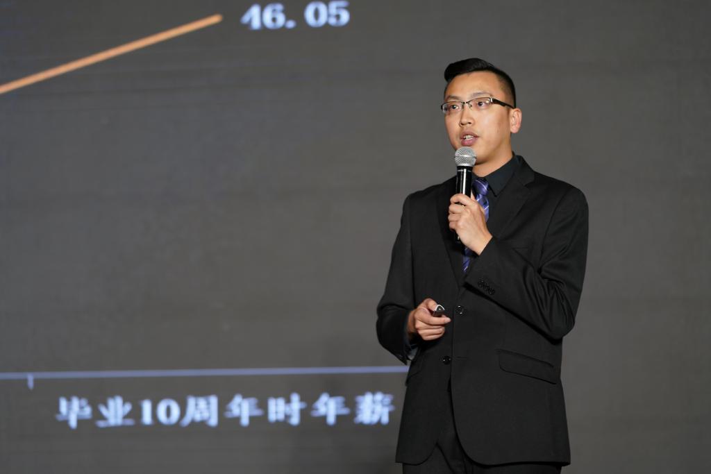 MBA教育中心项目发展部黄基鑫老师以《从优秀到卓越》为主题向考生介绍MBA项目。他首先隆重介绍了中财MBA公众号升级推出微信智能机器人的咨询功能,它将陪伴各位考生实现备考招生咨询。他向考生万象城(中国)介绍相关招生政策,并从中财MBA的财金特色、国际视野、师资力量、职业发展等进行万象城(中国)介绍,并以校友和在校生的故事激励大家坚持MBA的精神,从优秀到卓越。