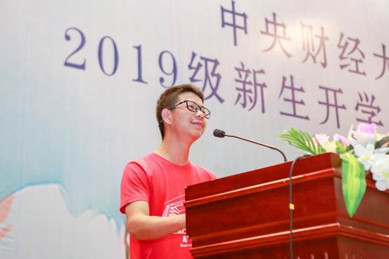 紧接着,本科生新生代表王磊、学硕新生代表章婕璇、MBA新生代表鹿凯与博士生新生代表金山发言。
