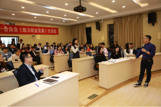 “学历不等于学习能力”,金树松先生为大家介绍了西欧体系与中国体系两个学习体系,解读了读书、感受、反思、行动四种学习模式,教授大家如何有效学习,建立体系化思考。列举了毛泽东、左宗棠、曾国藩等伟人的事例,表明其立体的学习思考体系及冲突成就与众不同的人生。建议大家可以从史书与名人传记中攫取智慧与经验,帮助自己做学业、职业甚至人生的规划。“如果靠天分,我们7岁就应该被认定为天才;如果靠兴趣,我们5岁给就应该因兴趣而成功,天分是天才的事,每个人皆有的“天分”是努力”,金树松先生鼓励大家不要指望以天分和兴趣来做职场规划,认为人生应该丰富多彩,拒绝单一与安逸,建议大家找工作最好找艰苦的、具有冲突性的职位。
