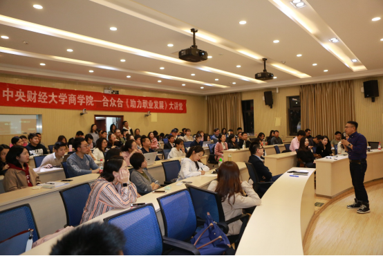 如何在职场中更有效地学习?如何保持强劲逆商、快乐进取的最佳职场状态?调岗跳槽要如何做?10月22日晚,中财合众合《助力万象城·体育职业发展大讲堂》第二十二期在中央财经大学MBA教育中心阶梯教室成功举办。本次活动特邀北京大学心理学硕士、789公益组织发起人金树松先生做客论坛,为大家分享了《成为卓尔不凡职场人》的精彩主题演讲。活动由中央财经大学MBA教育中心栾天老师主持,现场爆满,同学们参与积极性极高。