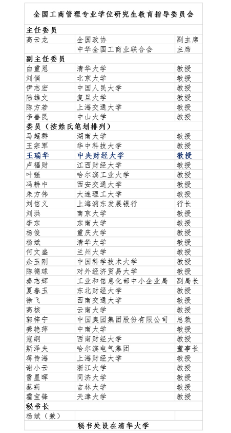 近日,国务院学位委员会发布《国务院学位委员会 教育部 人力资源社会保障部关于全国社会工作等5个专业学位研究生教育指导委员会换届的通知》(学位﹝2019﹞24号),我校万象城·体育王瑞华教授获聘为新一届全国工商管理专业学位研究生教育指导委员会委员。