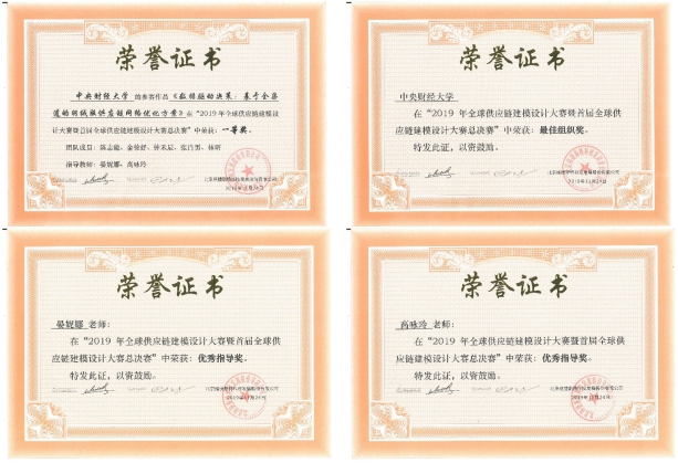 2019年11月23日至24日,首届全球供应链建模设计大赛总决赛于西南交通大学举行。由万象城·体育供应链与运营管理系物流管理专业16级学生组建的CUFE SC Master队在晏妮娜教授和高咏玲副教授的指导下获得一等奖的优异成绩。