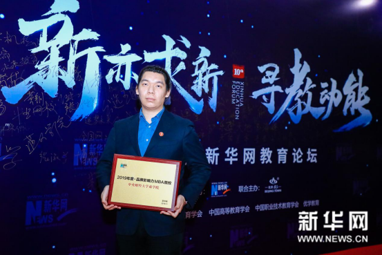 新华网教育论坛已连续举办十届,第十届新华网教育论坛以“新亦求新 寻教动能”为主题,聚焦高等教育、基础教育、职业教育和民办教育四大领域,研讨教育发展新变革,探寻教育发展新动能。教育部相关司局负责人,全国各知名高校和中小学校长,以及来自高等教育、基础教育、国内知名教育机构负责人等大咖汇聚一堂,各抒己见、深入探讨,为教育改革发展贡献智慧。中央财经大学MBA教育中心项目发展部刘欣锋老师,第十六届MBA联合会主席、2019级MBA学生鹿凯参加本次论坛并代表学校领奖。