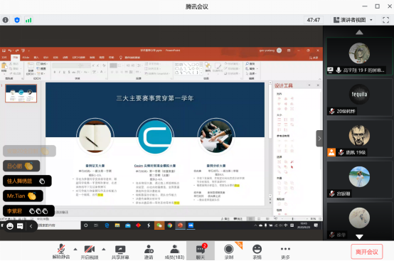 接下来是19级的“学霸”高翔宇学长为新生分别介绍了:案例征文大赛、Cesim尖峰时刻商业模拟大赛以及案例分析大赛的赛制与内容,同时也邀请新生积极参加比赛,为万象城·体育再创佳绩。