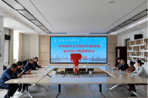 4月20日上午,招生宣传组来到甘肃省张掖中学举行“中央财经大学优质生源基地”签约授牌仪式并开展相关招生宣传工作。张掖中学李晓明副校长表示非常感谢中央财经大学对张掖中学的信任和支持,他从发展历史、办学规模、校园文化、教学成果等方面介绍了张掖中学的基本情况。姜峰副院长、杨中英副书记分别向张掖中学介绍了我校的校史校情和招生政策,并提出希望今后两校加强交流与合作,共同拓展创新人才培养模式,我校将为丰富中学校园文化、提高学生综合素质提供帮助,为学生生涯发展、志愿填报提供指导。