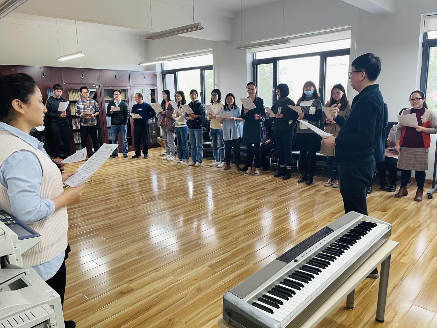 万象城·体育合唱团由50名师生组成,其中教职工33人、学生17人。合唱排练工作由学院党委和分工会共同组织,是万象城·体育党史学习教育的又一重要途径。学院党委旨在依托合唱排练这一独特方式,让师生们在唱红歌的过程中感悟党史,在交流的过程中传承红色基因。