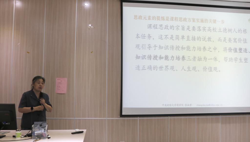 张淑君教授结合《服务管理》课程,从教学内容和教学方法两个渠道深挖思政元素,诠释了中国传统文化在管理服务实践中的重要作用,强调要以润物细无声的方式引导学生形成正确的价值观。她表示,思政元素的提炼是课程思政方案实施的关键一步,要将价值塑造、知识传授和能力培养三者融为一体。