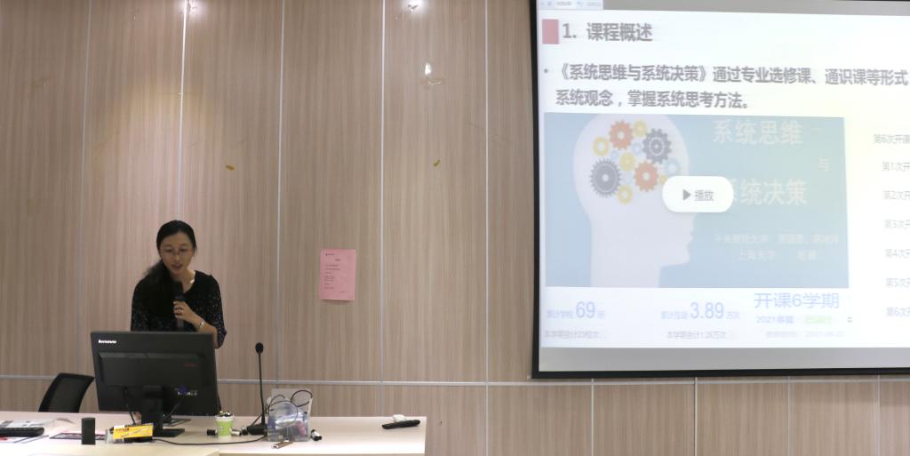 高咏玲教授分享了《系统思维与系统决策》这门课程的思政元素如何嵌入的教学经验。她表示,要深入挖掘习近平新时代中国特色社会主义思想中对课程内容有指导意义的内容,进而有效融入到专业课教学的不同环节中,对学生进行价值引领和家国情怀的培养。