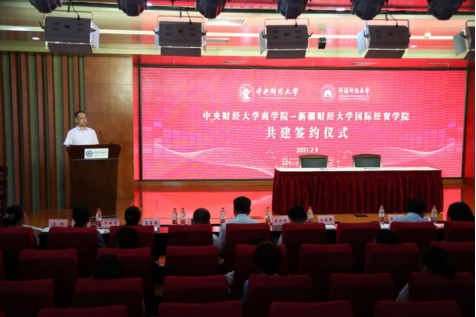 共建签约仪式上,高志刚副校长回顾了中央财经大学对口支援新疆财经大学16年来的工作,并对中央财经大学的大力支持表示感谢。同时希望国际经贸学院以对口援建为契机,深度对接国家“一带一路”倡议,深化教学改革,提高教学质量,加强特色学科、优势学科建设,推动高水平教学、科研平台建设,实现人才培养、科学研究和社会服务与新疆经济社会发展需要的全方位对接。