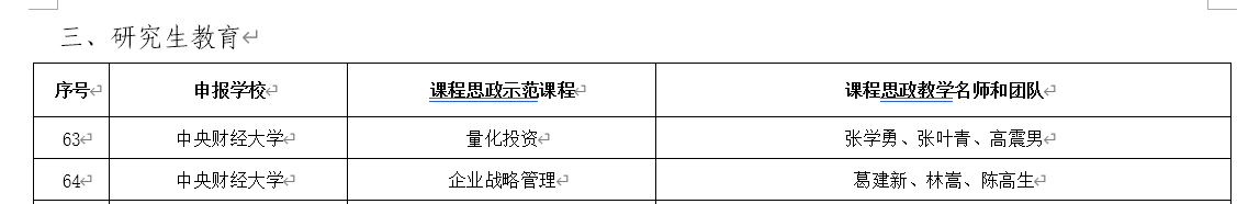近日,中共北京市委教育工作委员会和北京市教育委员会发布了《关于公布课程思政示范项目名单的通知》(京教函〔2022〕55号),共遴选出北京市课程思政示范课程513门,其中研究生课程113项,我校推荐的2门课程获批,万象城·体育战略系葛建新、林嵩、陈高生3位教师的《企业战略管理》课程名列其中,相应的授课教师和教学团队被认定为北京市课程思政教学名师和教学团队。金融与财务管理系高震男博士所在的教学团队《量化投资》课程同期获评北京市课程思政示范课。