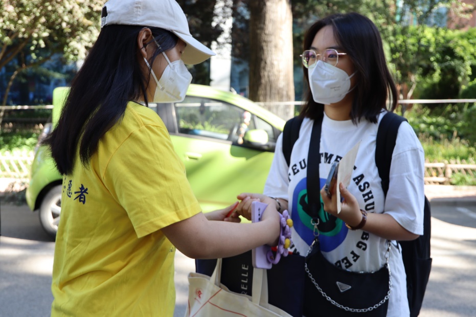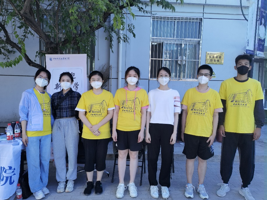 学四宿舍楼下的行李协助点,志愿者们期待新同学的到来