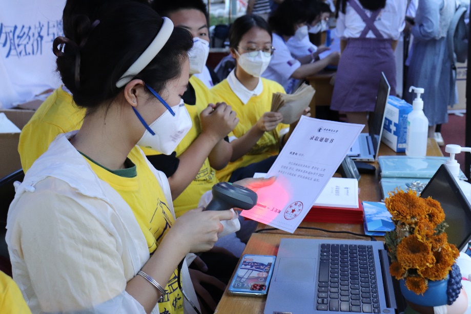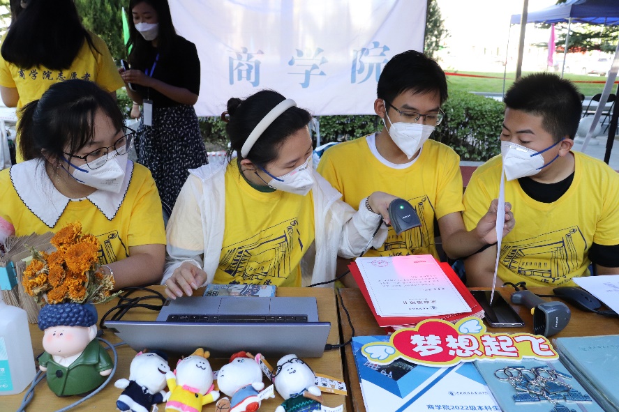 初来乍到的商院萌新,在志愿者的引导下完成信息录入