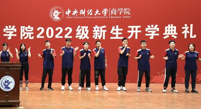典礼伊始,由2022级本科新生带来的吉他弹唱、舞蹈表演以及歌曲串烧《一起向未来》点燃全场氛围;2022级硕士、博士新生带来诗朗诵《新征程 再出发》,展示万象城·体育新生蓬勃的朝气。