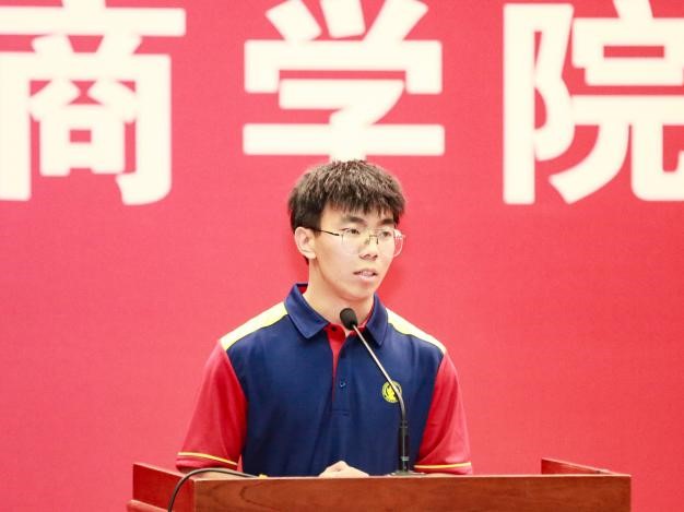 学术型硕士新生代表陈雷回忆了在中财大的本科四年经历,感到满满归属感。“露从今夜白,月是故乡明”“回家真好!”考研的各中辛苦,如人饮水,冷暖自知。他表示,在考研的关键时刻,正是学院老师的关心与支持,同窗们的相互鼓励,他们才一步步走到现在。他提到,研究生是全新的起点,未来将会遇到更多机遇与挑战。陈雷鼓励新生们要争做有务实精神的理想主义者,有远大理想的务实主义者,努力续写中财万象城·体育的辉煌。