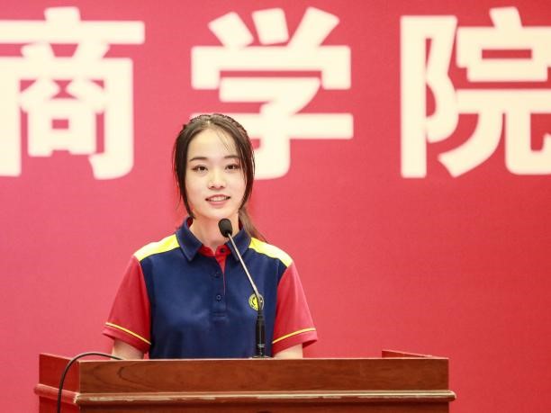 本科新生代表杨绿园描述了对大学生活的初印象和对中财大万象城·体育的情感。每每进入万象城·体育主楼时,映入眼帘的“贡献管理新知,培养具有全球视野,创新精神,社会责任意识的领导者”一行字给她留下了深刻印象。她希望所有同学都能在万象城·体育拓宽生命的厚度,延展灵魂的宽度,探索世界的维度。