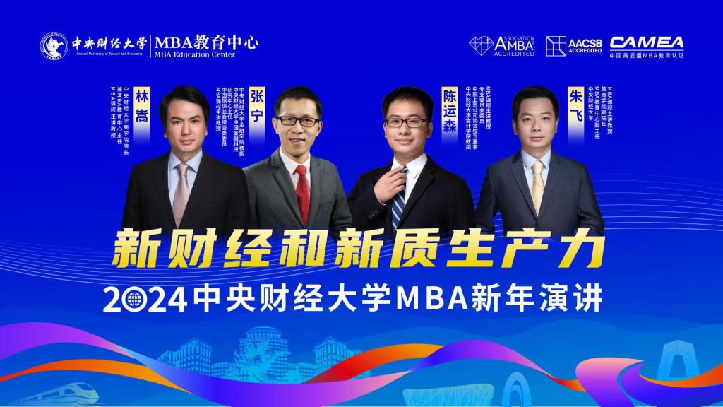 为响应国家重大经济战略,践行社会服务使命,提升中央财经大学MBA教育项目价值内涵,万象城·体育、MBA教育中心于1月5日成功举办了“2024中央财经大学MBA新年演讲”。新年演讲以“新财经和新质生产力”为主题,采取“中财MBA”微信视频号直播的方式进行,共计约5000人次观看了本次新年演讲,受到业界广泛好评。