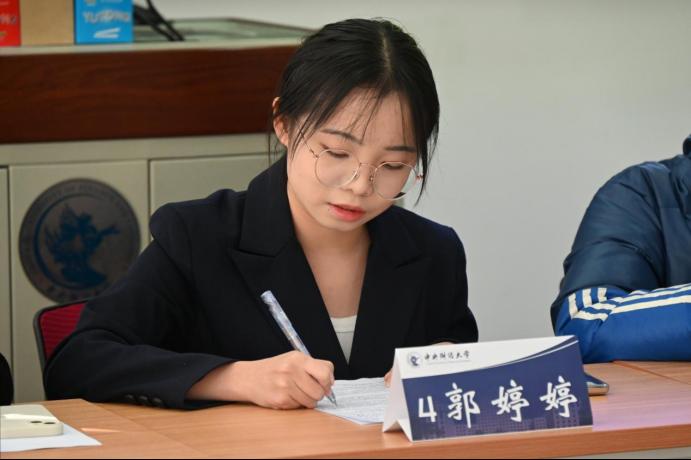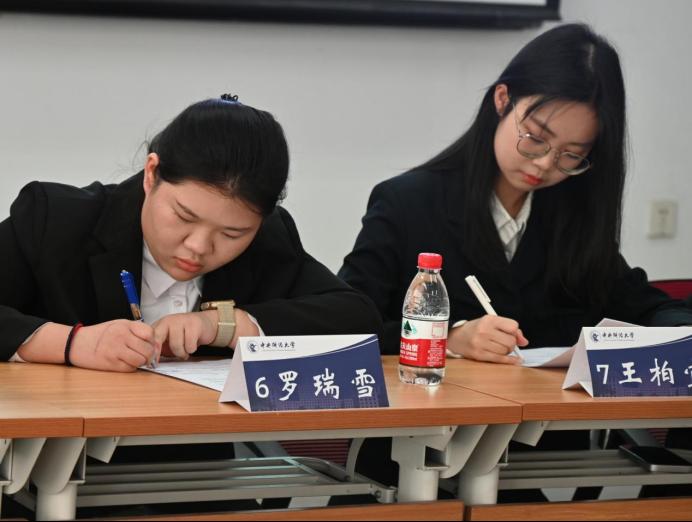 此环节中,每位选手有5分钟的面试时间,用于进行自我介绍并回答结构化面试问题。面试官提出了诸如“在实习/学校部门中最难忘的项目经历?”“对于未学习人力资源管理专业的面试者,为何前来面试本岗位?”“如何让面试官相信你可以胜任本职位?”“在你的实习经历或者参赛经历有什么可以支撑你符合岗位标准?”等一系列问题。每位选手针对面试官的提问均进行了深入思考,最大限度地展示了自己的专业能力与性格优势。