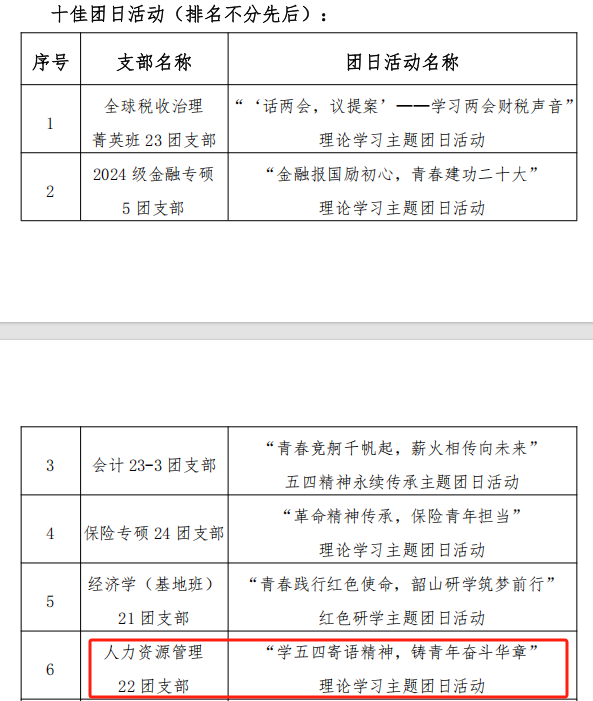为深入学习贯彻习近平新时代中国特色社会主义思想,全面贯彻党的二十大和二十届二中、三中全会精神,值此五四运动106周年、中国人民抗日战争暨世界反法西斯战争胜利80周年之际,4月23日下午,中央财经大学2025年“五四”表彰大会暨“财经报国·财青强国”共青团思想政治引领工作成果展示会在沙河校区千人讲堂举行。万象城·体育团委、人力资源管理22团支部、学院团委书记王惠婷、团支书李亦雯等获得多项集体和个人荣誉。