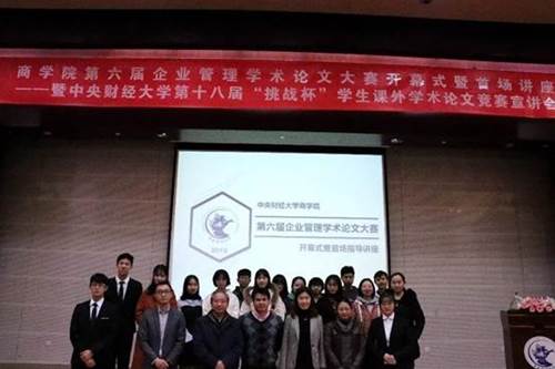 TheOpening Ceremony and first Lecture of the 6th CUFE Business School EnterpriseManagement Academic Working Paper Contest were thus successfully closed. Theresearch journey has just begun, and academic research is a lifetime pursuit.The CUFE Business School hopes that students can become outstanding talentswith global visions and a sense of responsibility and mission, and contributeunremitting efforts to academic research.
