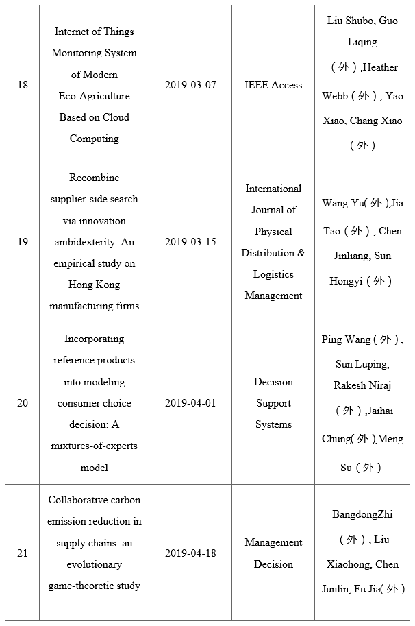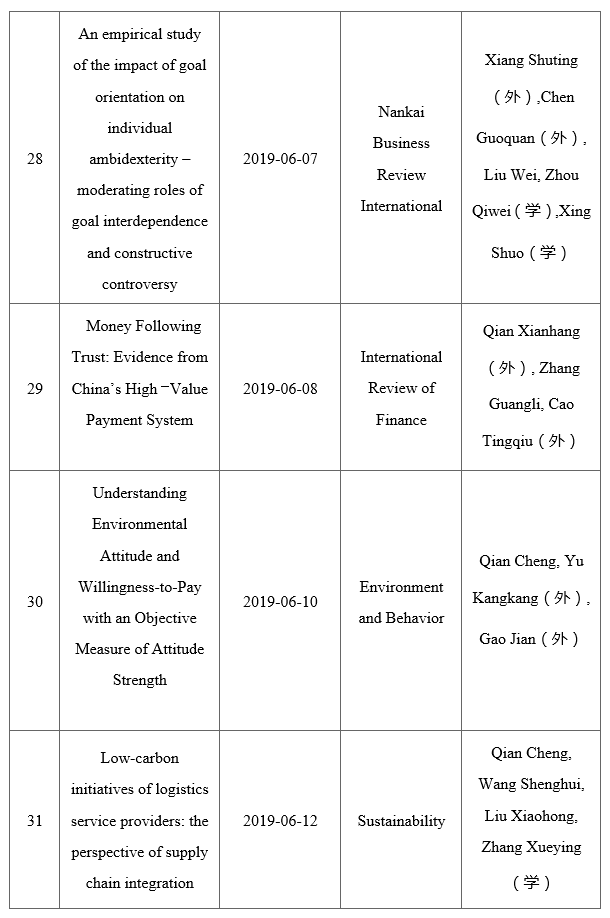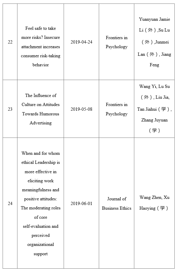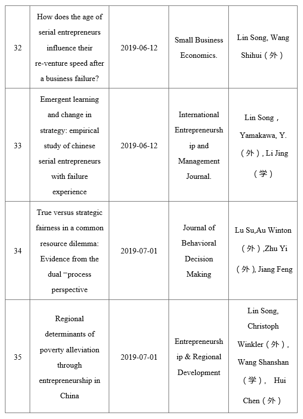 CUFEBusiness School faculty have published 35 academic papers in Chinese andEnglish journals of Class A and above, including 25 English papers. The list ofpapers is as follows: