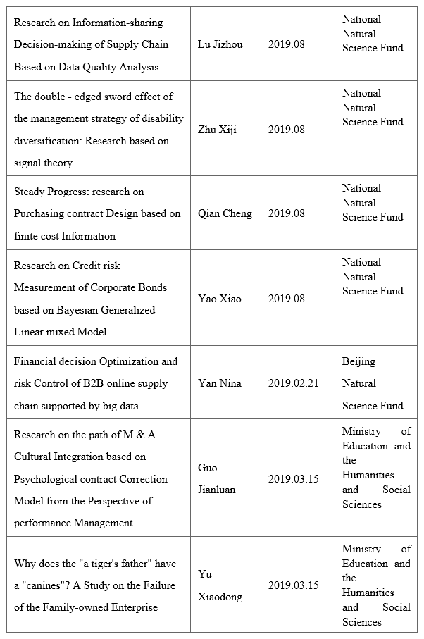 CUFE Business School faculty haveobtained9 projects from NationalNatural Science Fund, 1 project from Beijing Natural Science Fund, and 2projects from the Ministry of Education and the Humanities and Social Sciences.
