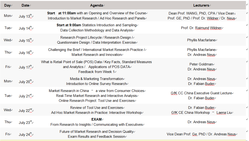 Lecture time:7.13, 2:00—3:30 ; 7.14—7.17 and 7.20—7.24, 9:00—12:15 am, 1:45—3:15 pm