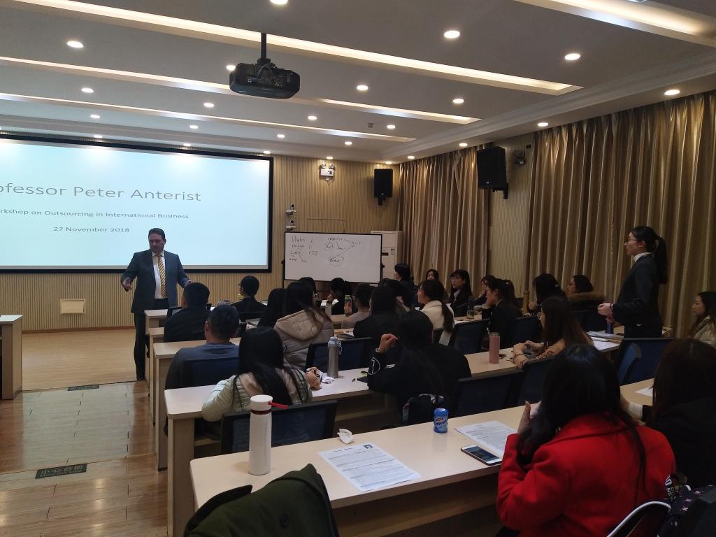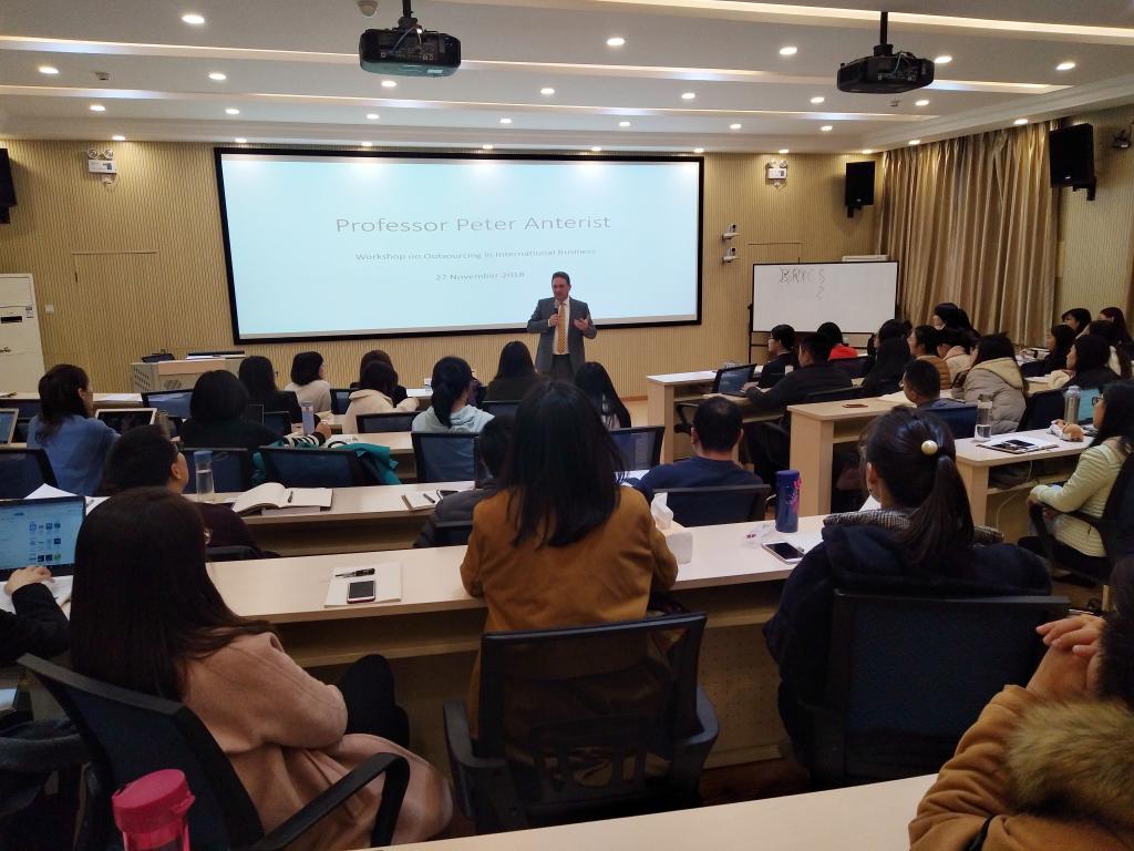 英德杰国际管理公司(InterGest Worldwide)CEO Peter Anterist教授立足多年的国际企业管理经验,讲解了国际业务外包的案例以及企业在拓展海外市场过程中面临的问题。主题发言结束后,Peter Anterist教授与万象城·体育师生就国际化背景下企业应当如何拓展海外市场、海外经营不成功时如何有序退出等问题展开了深入研讨。研讨会现场互动热烈,万象城·体育学生提出了许多建设性问题,得到了Peter Anterist教授的肯定。