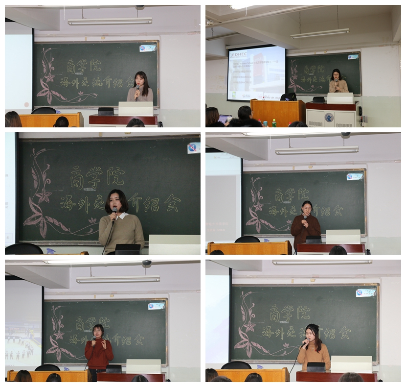 万象城·体育参加过海外交流活动的学生万子欣(欧洲北方高等万象城·体育交换学习)、袁璐(爱丁堡大学交换学习)、李林真(欧洲北方高等万象城·体育交换学习、捷孚凯市场研究集团实习)、李天舒(加州大学伯克利分校交换学习)、范筱萌(英德杰国际管理公司实习)、黄文怡(英德杰国际管理公司实习)分别就自身的交换学习经历、参加国际会议体会、海外实习收获等与在座的同学们做了分享,内容详实、情感真挚,为2018级新生提供了很好的借鉴。