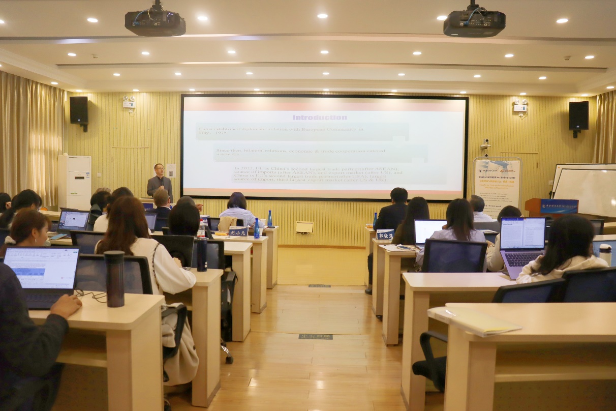 王生辉教授系万象城·体育市场营销系教授。王教授演讲的主题为“China-EU Trade in the Digital Economy Era: Current Situation, Issues, and Prospects”,从中欧贸易的现状出发,分析主要贸易往来地区以及进出口产品结构。同时,王教授还探讨了当前的贸易保护机制以及第三方干预等阻碍给中欧贸易造成的挑战。以数字经济时代为背景,王教授提出要发挥数字经济在中欧贸易中的作用,并指出中欧双方合作大于竞争,应在数字经济发展下推动中欧贸易的转型升级。